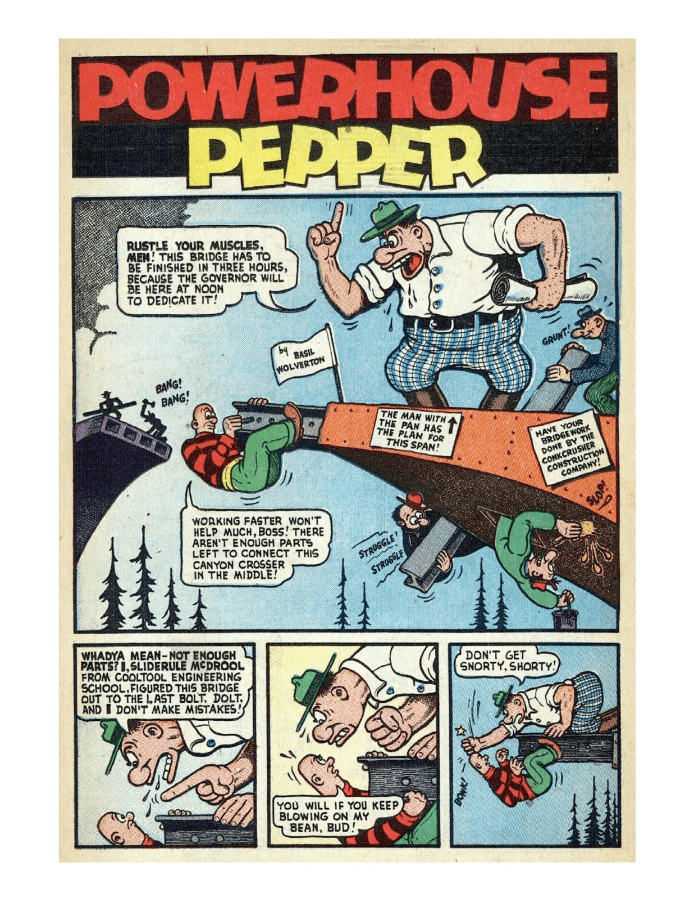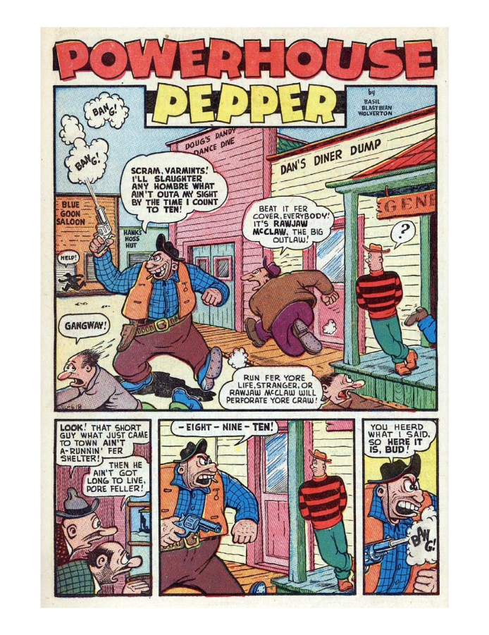 Powerhouse Pepper comic title by Basil Wolverton.
