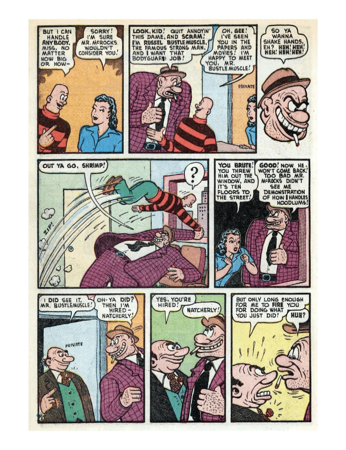 Comic cover, Tessie the Typist, surprised characters. Comic strip showing a boy and a girl discussing a mysterious box and a strange device. A comic strip showing characters in a café and a confrontation. A comedic comic strip showing a man with a toothache and a tough dentist encounter. Comic strip featuring characters in humorous and chaotic situations. Comic strip showing a humorous interaction between a man and a woman. A comic strip featuring characters in a humorous boxing gym setting. Comic strip showing humorous scenes with characters and dialogue bubbles. Comic showing a man escaping an angry mob by hiding in a building.